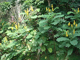 英文名稱:Ringworm Senna 學名:Senna alata (Linn.) Roxb. 科名:豆科(Leguminosea)鐵刀木屬(Senna) 別名:翼柄決明、對葉豆、山扁豆